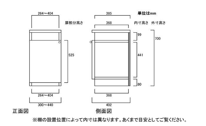 | 扉高41.5cm | 扉高52.5cm | 扉高62.6cm | 扉高72.5cm | 扉高80.8cm | |||||||