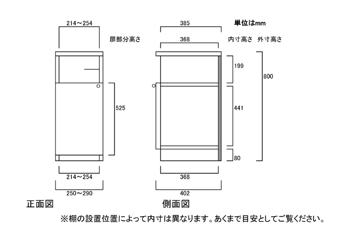 | 扉高41.5cm | 扉高52.5cm | 扉高62.6cm | 扉高72.5cm | 扉高80.8cm | |||||||