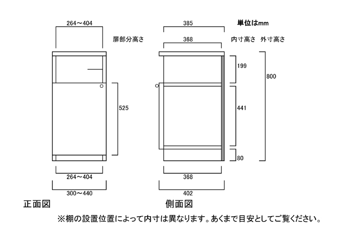| 扉高41.5cm | 扉高52.5cm | 扉高62.6cm | 扉高72.5cm | 扉高80.8cm | |||||||