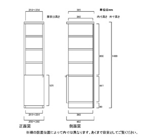 | ■外寸 | 奥行40cm×高さ149.9cm×幅25〜29cm (幅は1cm単位でオーダーできます) |