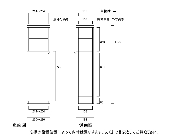 | 扉高109.5cm | 扉高127.3cm | 扉高142.2cm | 扉高170.2cm | ||||||||