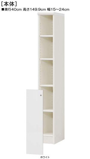 | ■外寸 | 奥行40cm×高さ149.9cm×幅15〜24cm (幅は1cm単位でオーダーできます) |