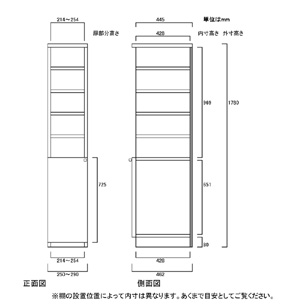 | ■外寸 | 奥行46cm×高さ178cm×幅25〜29cm (幅は1cm単位でオーダーできます) |