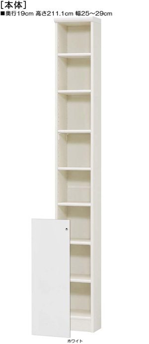| ■外寸 | 奥行19cm×高さ211.1cm×幅25〜29cm (幅は1cm単位でオーダーできます) |