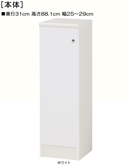| ■外寸 | 奥行31cm×高さ88.1cm×幅25〜29cm (幅は1cm単位でオーダーできます) |