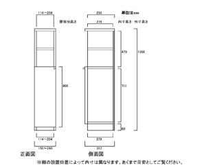 | ■外寸 | 奥行31cm×高さ135cm×幅15〜24cm (幅は1cm単位でオーダーできます) |