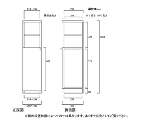 | ■外寸 | 奥行31cm×高さ135cm×幅25〜29cm (幅は1cm単位でオーダーできます) |