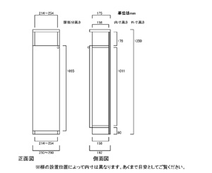| ■外寸 | 奥行19cm×高さ135cm×幅25〜29cm (幅は1cm単位でオーダーできます) |
