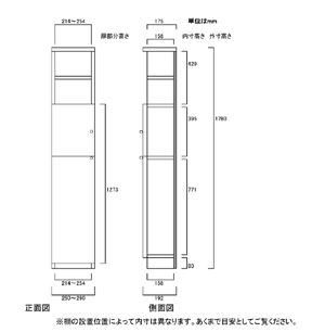 | ■外寸 | 奥行19cm×高さ178cm×幅25〜29cm (幅は1cm単位でオーダーできます) |