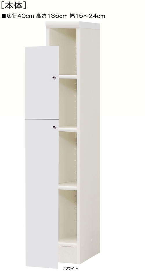 | 隙間利用型すき間ラック ノーマル棚 (厚さ1.7cm)耐荷重:10Kg 奥行40cm×高さ135cm×幅15〜24cm |
