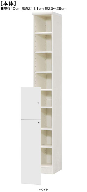 | ■外寸 | 奥行40cm×高さ211.1cm×幅25〜29cm (幅は1cm単位でオーダーできます) |