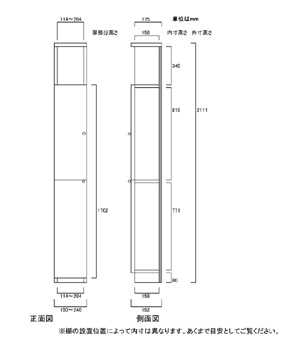 | ■外寸 | 奥行19cm×高さ211.1cm×幅15〜24cm (幅は1cm単位でオーダーできます) |