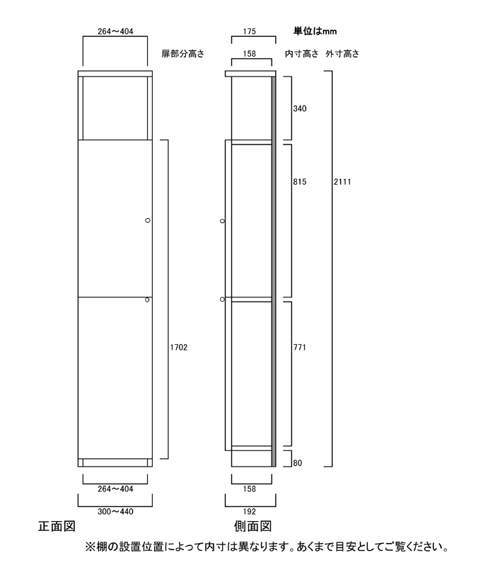 | 扉高109.5cm | 扉高127.3cm | 扉高142.2cm | 扉高170.2cm | ||||||||