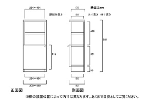 | ■外寸 | 奥行19cm×高さ88.1cm×幅30〜44cm (幅は1cm単位でオーダーできます) |