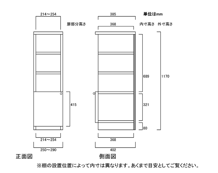 | 扉高109.5cm | 扉高127.3cm | 扉高142.2cm | 扉高170.2cm | ||||||||