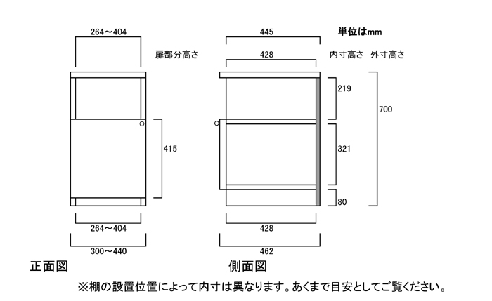 | 扉高41.5cm | 扉高52.5cm | 扉高62.6cm | 扉高72.5cm | 扉高80.8cm | |||||||