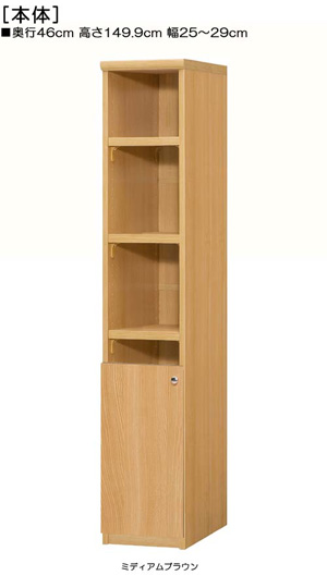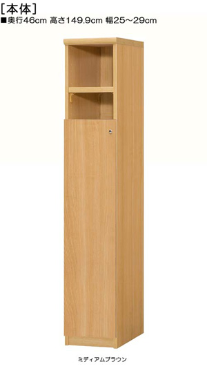 | ■外寸 | 奥行46cm×高さ149.9cm×幅25〜29cm (幅は1cm単位でオーダーできます) |