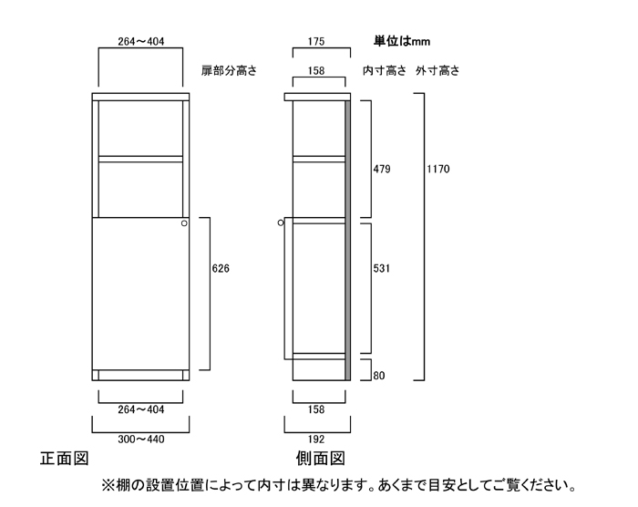 | 扉高41.5cm | 扉高52.5cm | 扉高62.6cm | 扉高72.5cm | 扉高80.8cm | |||||||