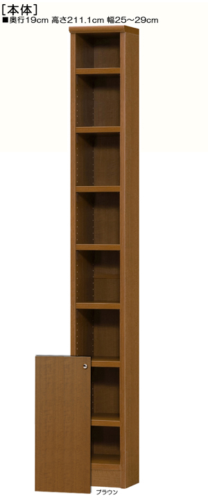 | 木製下扉付きすき間書棚 幅25〜29cm 棚板/厚板 棚板厚み2.5p 商品一覧 |