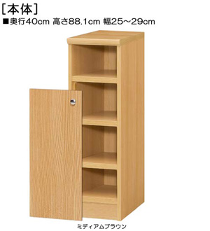 | ■外寸 | 奥行40cm×高さ88.1cm×幅25〜29cm (幅は1cm単位でオーダーできます) |
