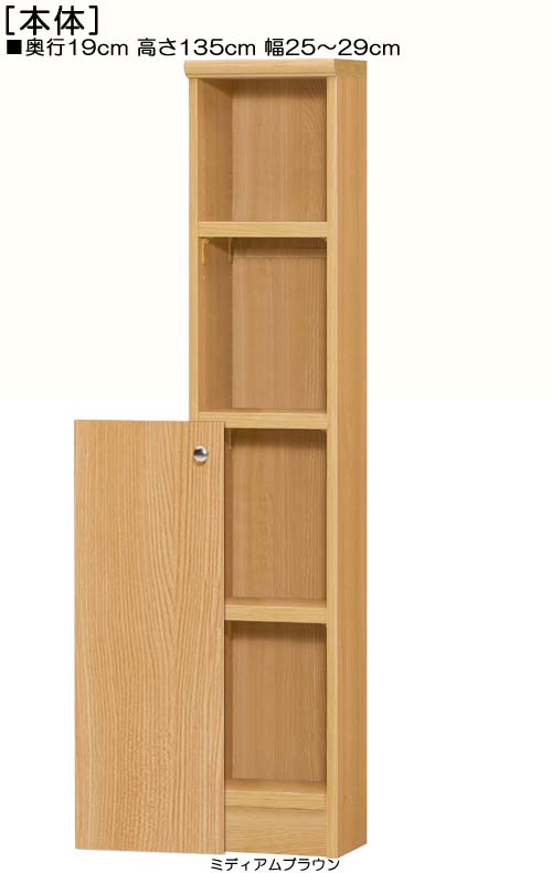 | ■外寸 | 奥行19cm×高さ135cm×幅25〜29cm (幅は1cm単位でオーダーできます) |