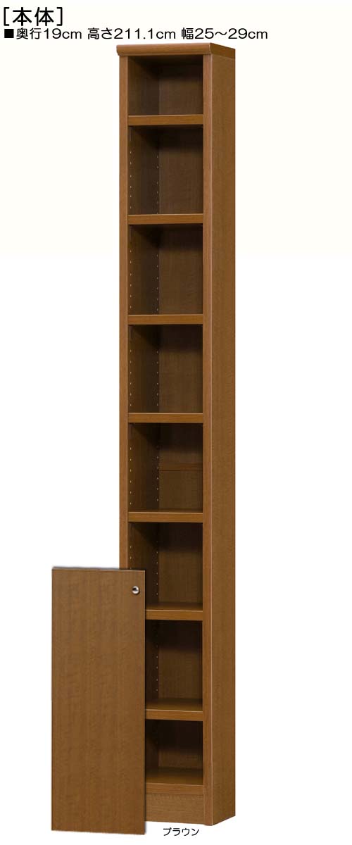 | ■外寸 | 奥行19cm×高さ211.1cm×幅25〜29cm (幅は1cm単位でオーダーできます) |