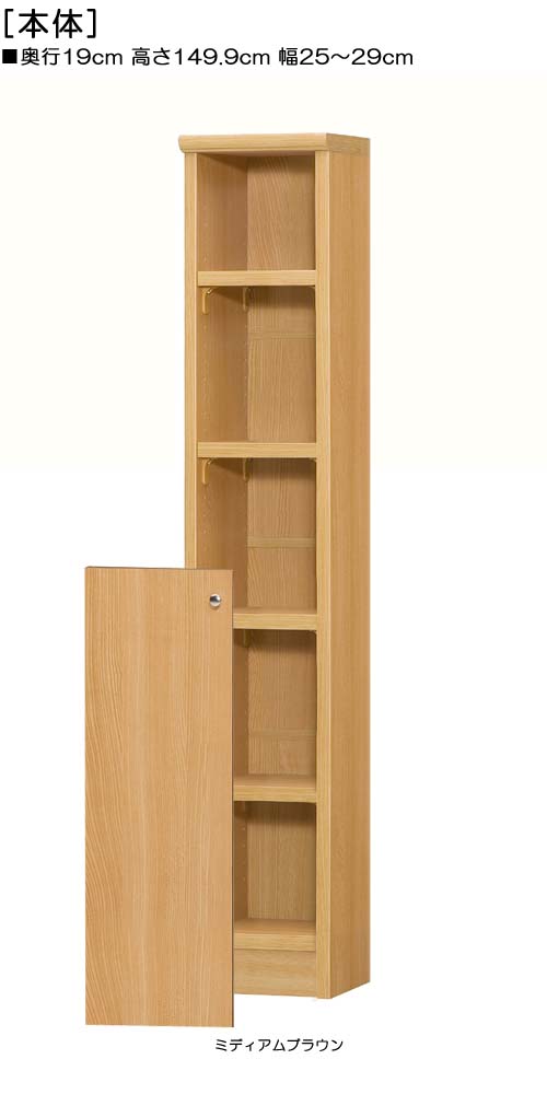 | ■外寸 | 奥行19cm×高さ149.9cm×幅25〜29cm (幅は1cm単位でオーダーできます) |