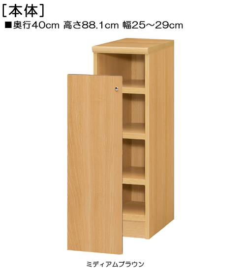 | ■外寸 | 奥行40cm×高さ88.1cm×幅25〜29cm (幅は1cm単位でオーダーできます) |