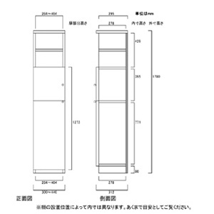 | ■外寸 | 奥行31cm×高さ178cm×幅30〜44cm (幅は1cm単位でオーダーできます) |