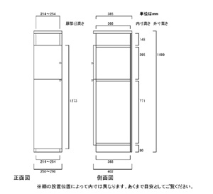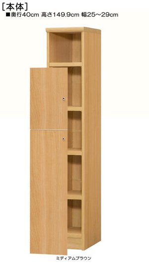 | ■外寸 | 奥行40cm×高さ149.9cm×幅25〜29cm (幅は1cm単位でオーダーできます) |