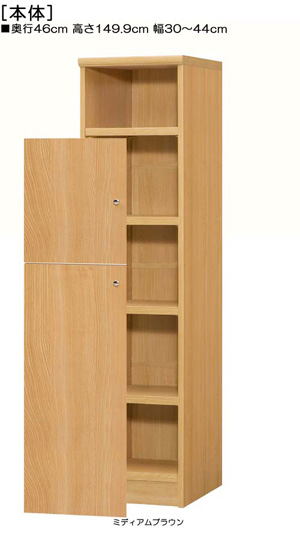 | ■外寸 | 奥行46cm×高さ149.9cm×幅30〜44cm (幅は1cm単位でオーダーできます) |