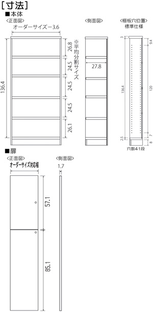 | ■外寸 | 奥行31cm×高さ149.9cm×幅15〜24cm (幅は1cm単位でオーダーできます) |