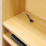| 高さ8cm×奥行1.5cmカット、幅木を避けて壁にピッタリ設置 | 標準仕様は3cmですが、1.5cmピッチ加工をすることで、細かく棚板調整できます。 | TV等の配線をスッキリ収めたい時に。 | 棚板に穴を空ける事で、棚板間での上下配線が可能になります。 |