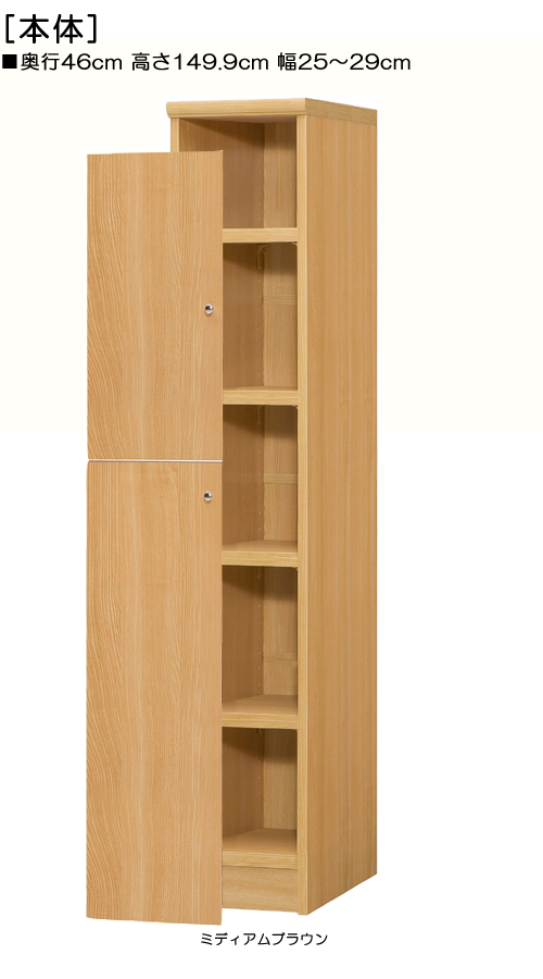 | ■外寸 | 奥行46cm×高さ149.9cm×幅25〜29cm (幅は1cm単位でオーダーできます) |