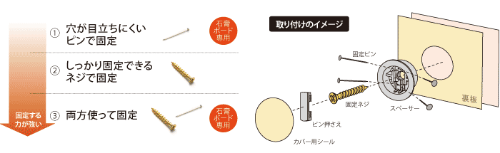 | ※固定ピンは、石膏ボードにのみご利用いただけます。 |